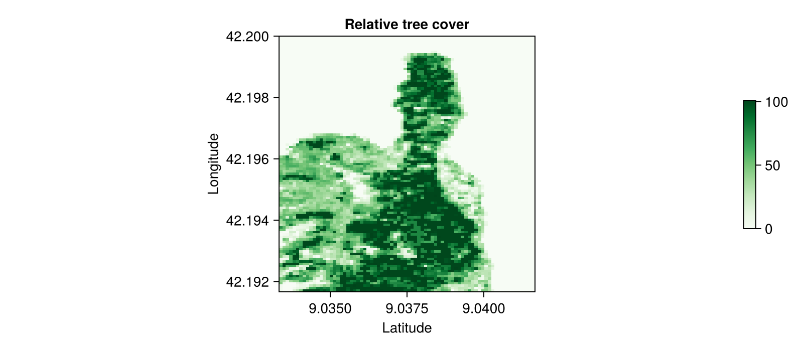 using CairoMakieTo illustrate the tiling, we will grab the tree cover as given in the EarthEnv dataset, for a small spatial extent.