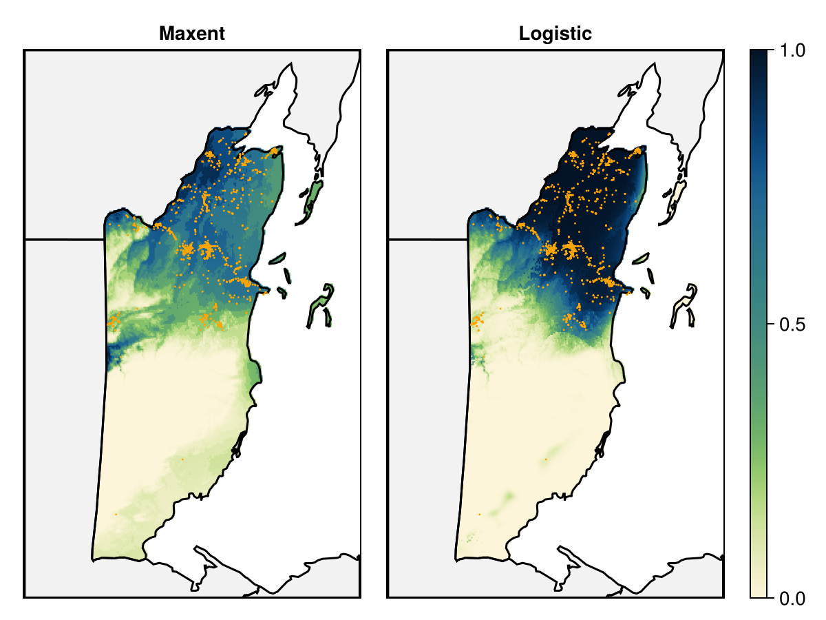MaxentMaximum entropy, using the Maxnet.jl package.