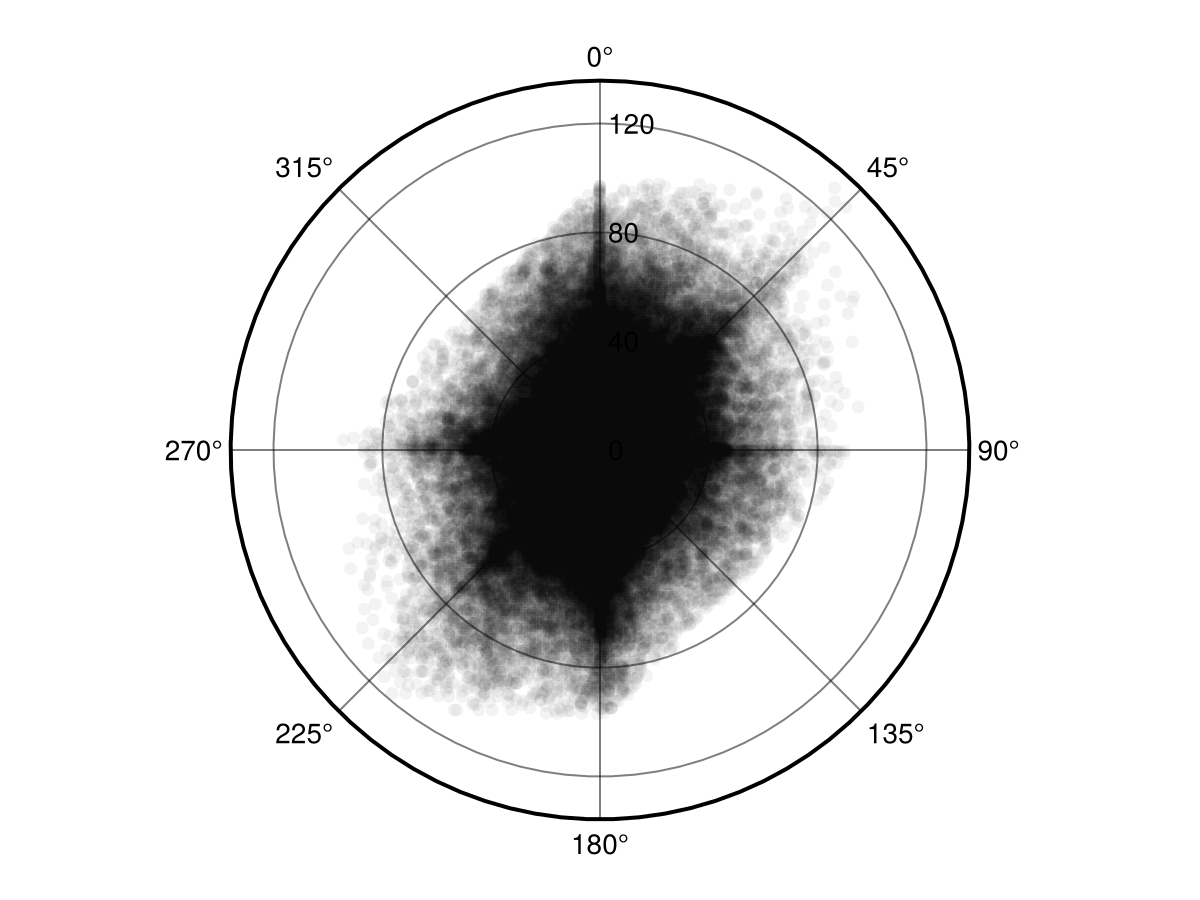 scatter!(ax, deg2rad.(W.direction), W.rate, alpha=0.05, color=:black)References