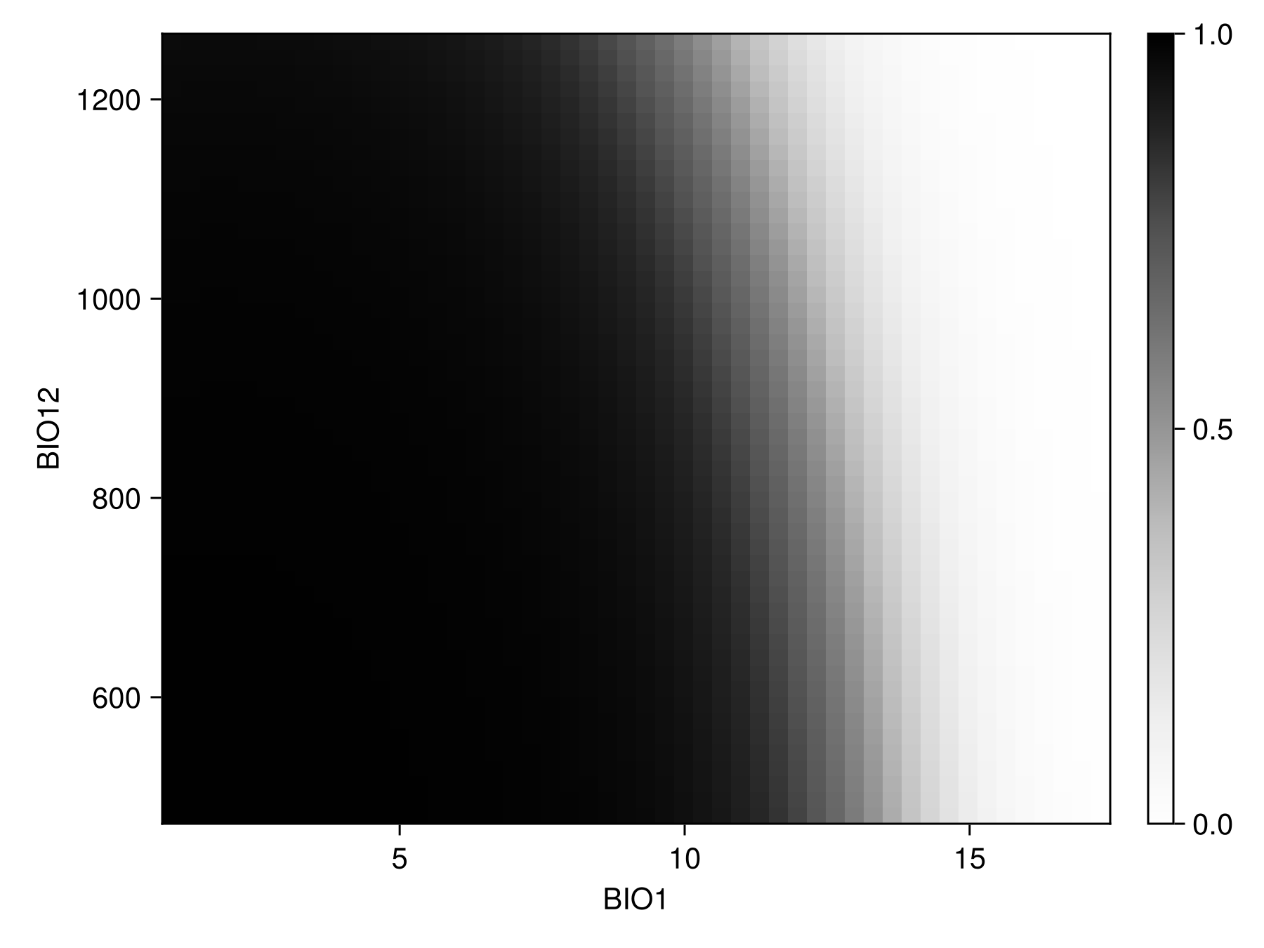 ax = Axis(f[1, 1]; xlabel = "BIO$(variables(sdm)[1])", ylabel = "BIO$(variables(sdm)[2])")