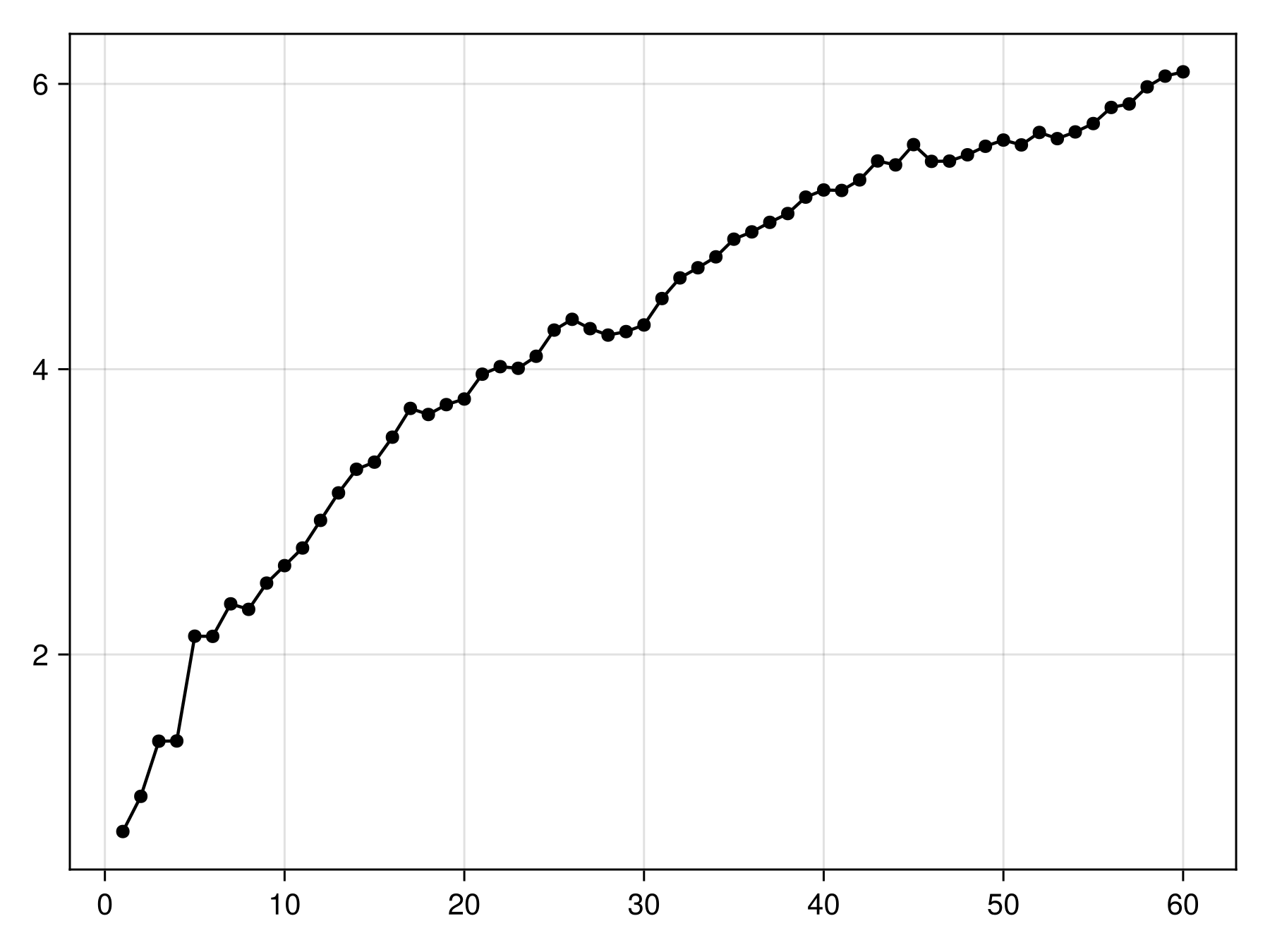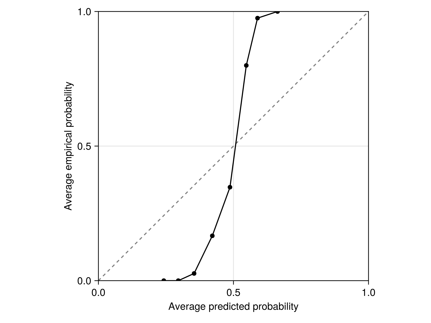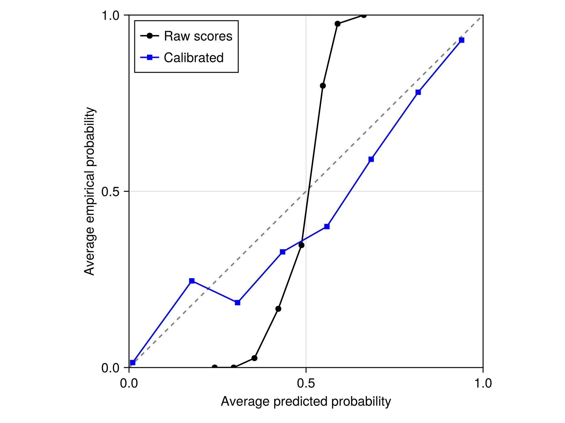 scatterlines!(ax, SDeMo.reliability(bst)...; color = :black, label = "Raw scores")