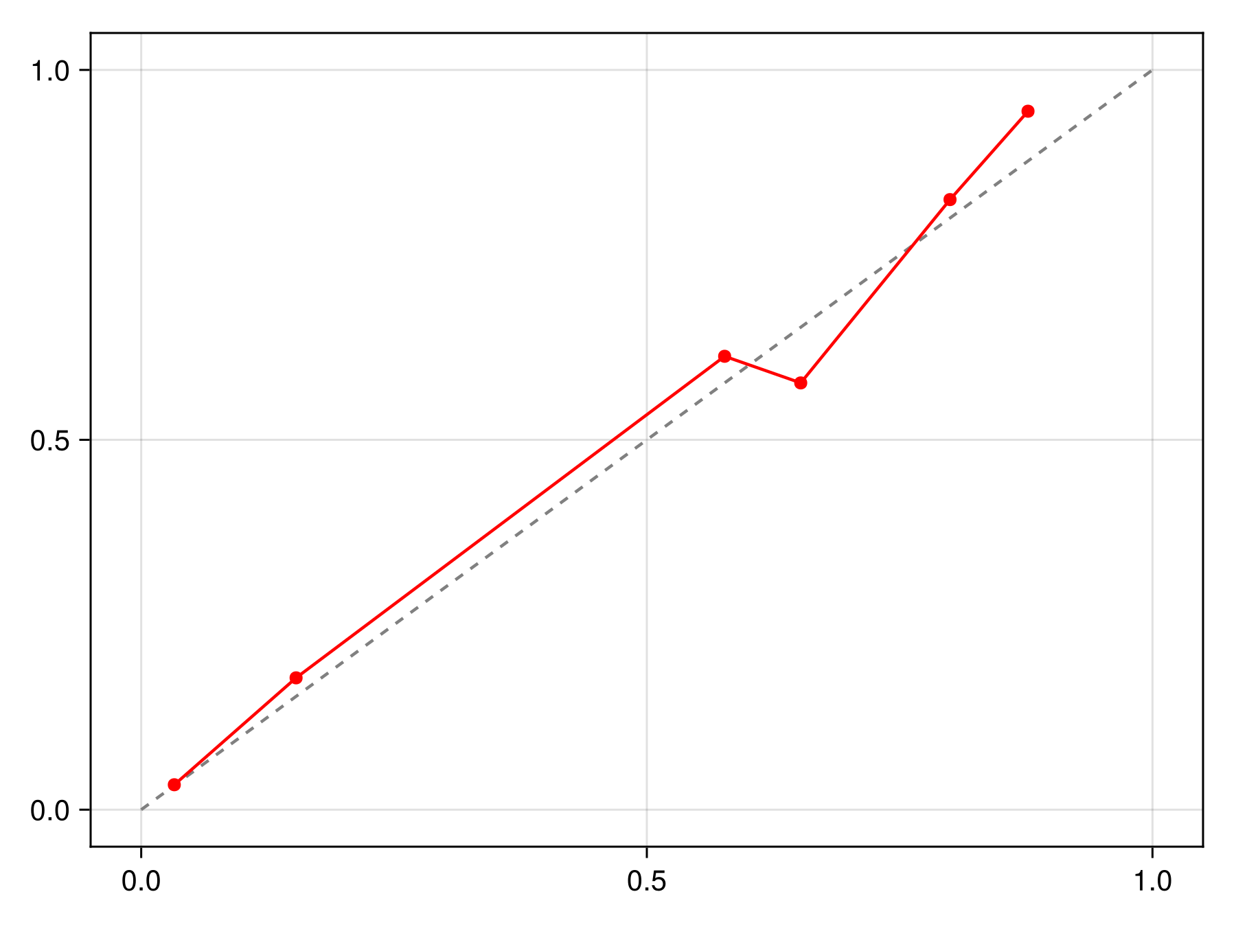 lines!(ax, [0, 1], [0, 1], color=:grey, linestyle=:dash)