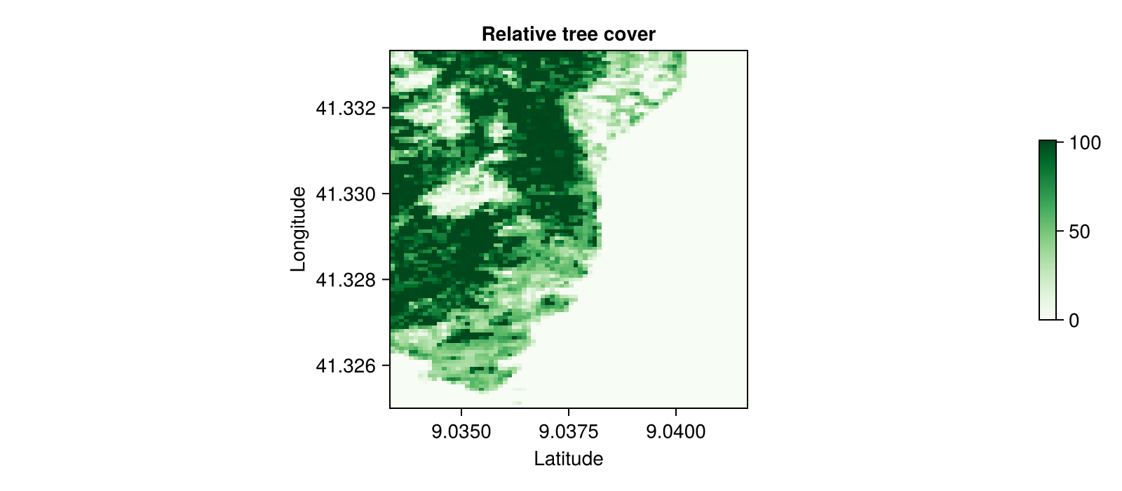 using CairoMakieTo illustrate the tiling, we will grab the tree cover as given in the EarthEnv dataset, for a small spatial extent.