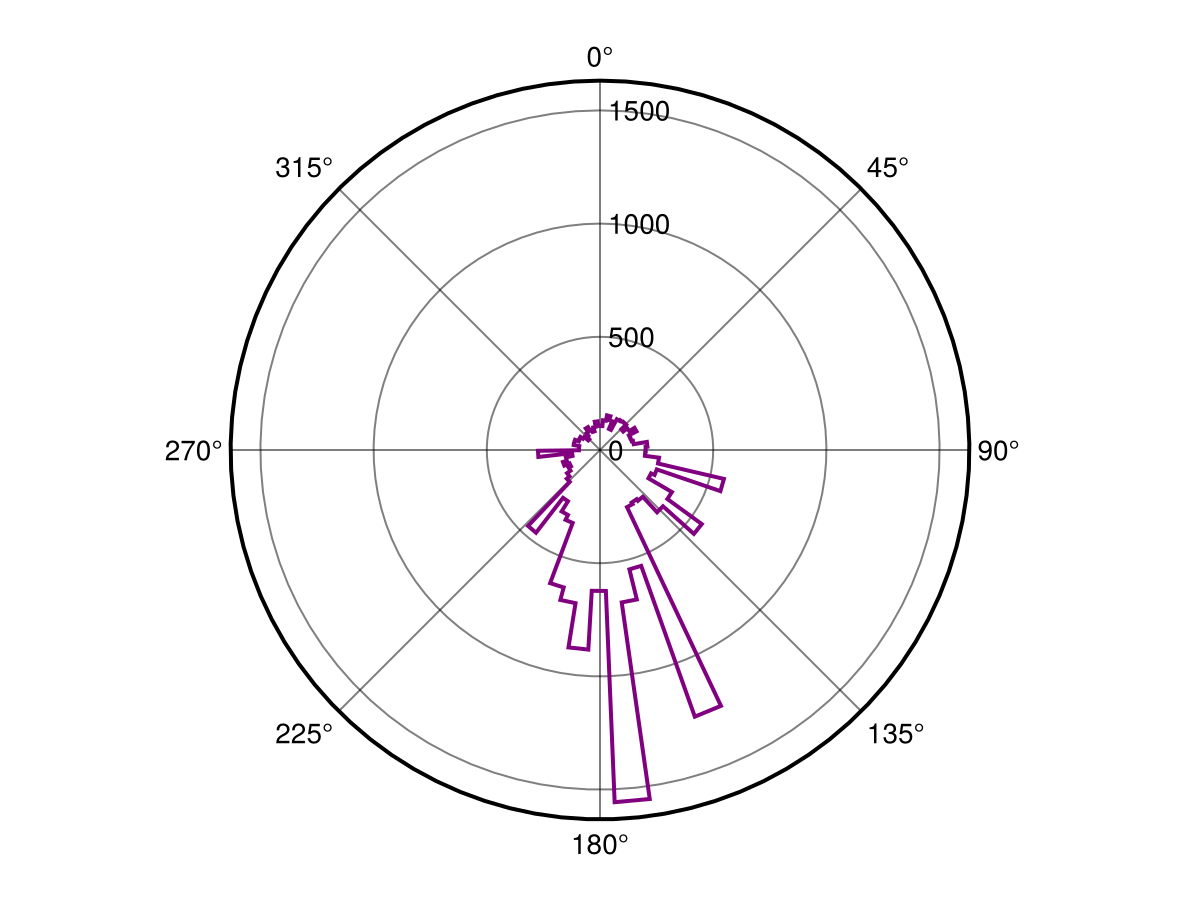 h = fit(Histogram, deg2rad.(values(direction)); nbins = 100)