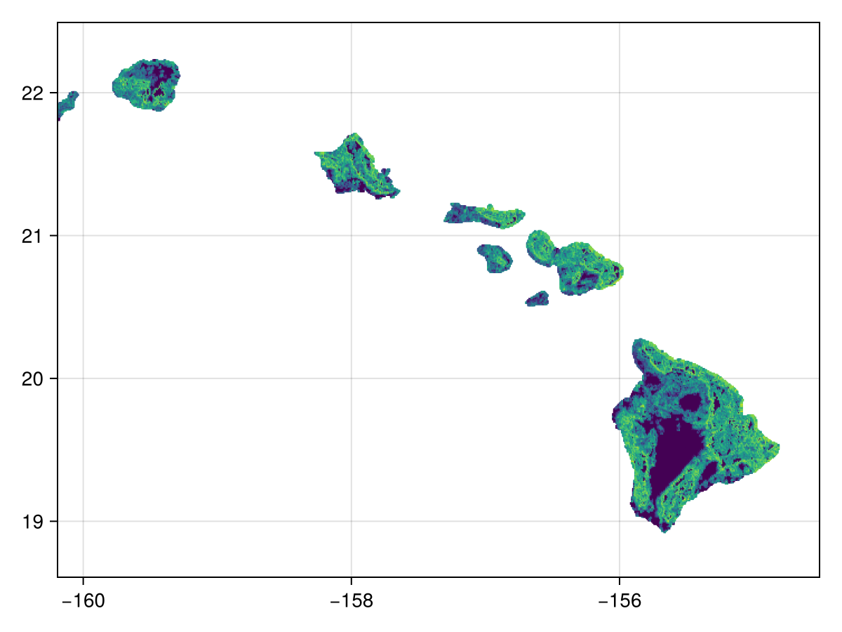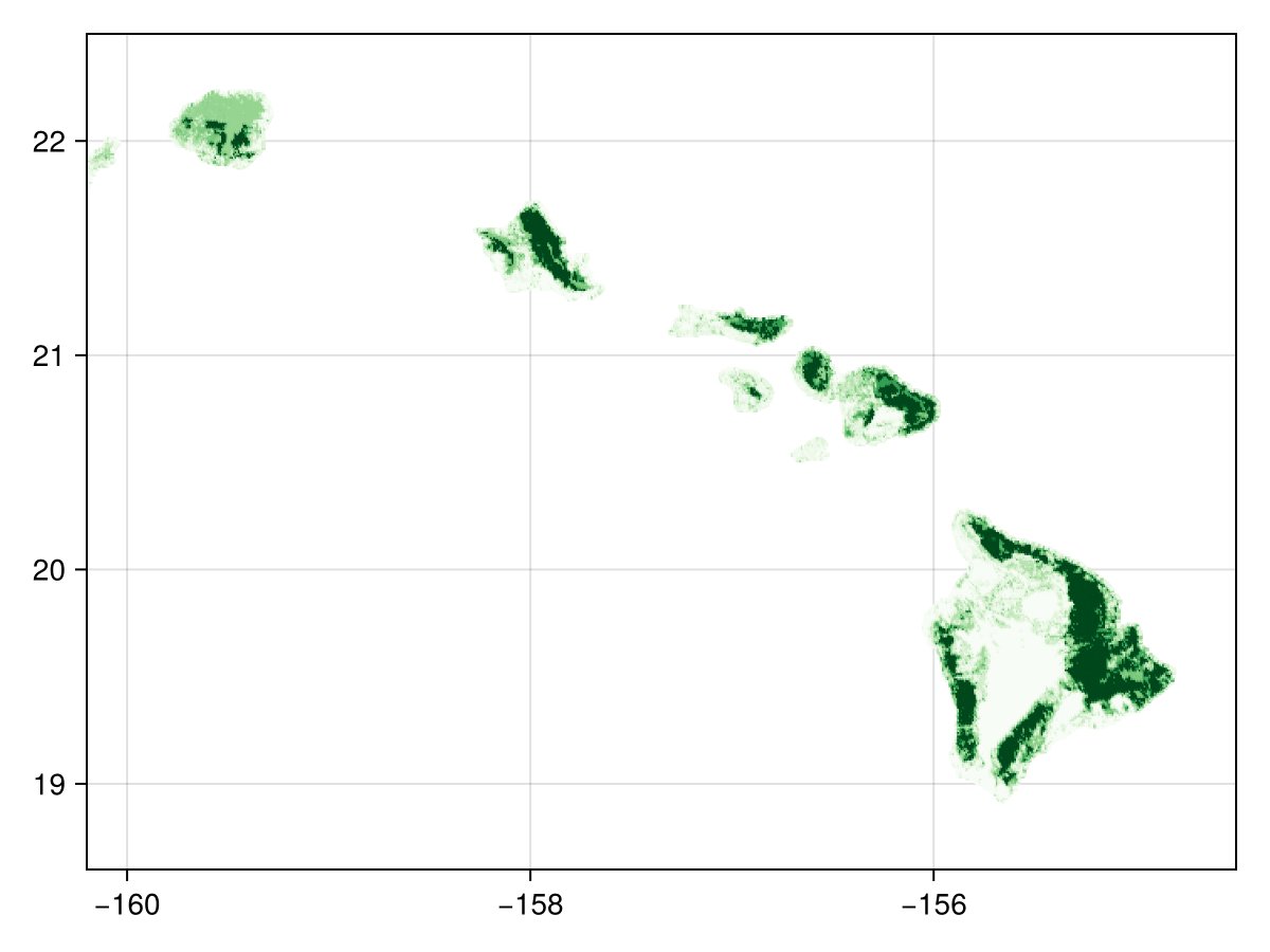 landcover = [SDMLayer(dataprovider; layer=class, full=true, hawaii...) for class in landcover_classes]12-element Vector{SDMLayer{UInt8}}: