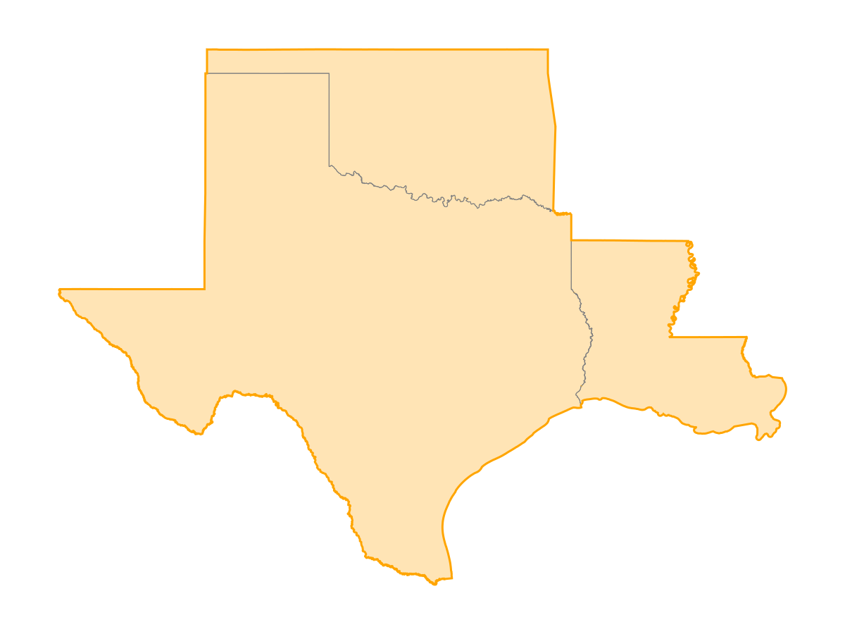 tx_ok_la = texas + oklahoma + louisianaPolygon(Geometry: POLYGON ((-91.6628646850586 29.3747406005859,-91.6 ... 722)))We can look at the output (the state lines have been added, and are in light grey):