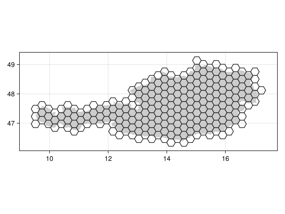 pol = getpolygon(PolygonData(NaturalEarth, Countries))["Austria"]Polygon Feature