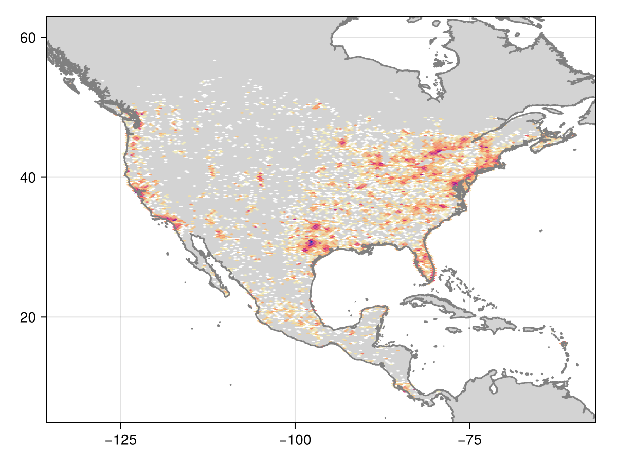 using CairoMakieThe correct way to consume a large amount of GBIF data is to get them through the download mechanism, in particular to ensure that the data contributors can be cited. We will get a downloaded dataset by using its DOI: