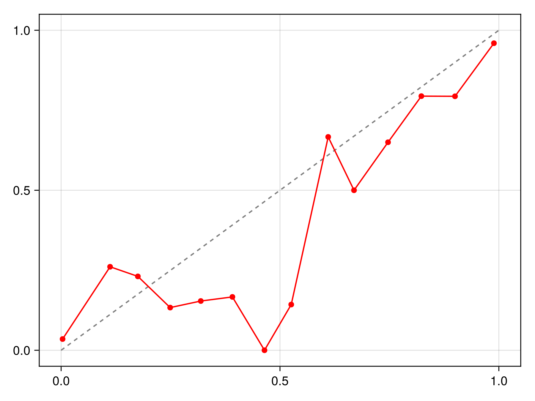 scatterlines!(ax, reliability(sdm, bins=15)..., color=:red)