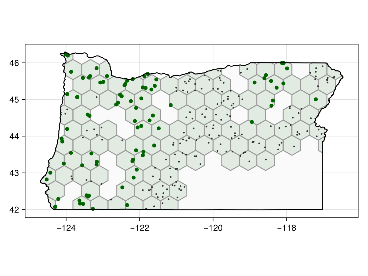 scatter!(ax, presences(model); color = :darkgreen)