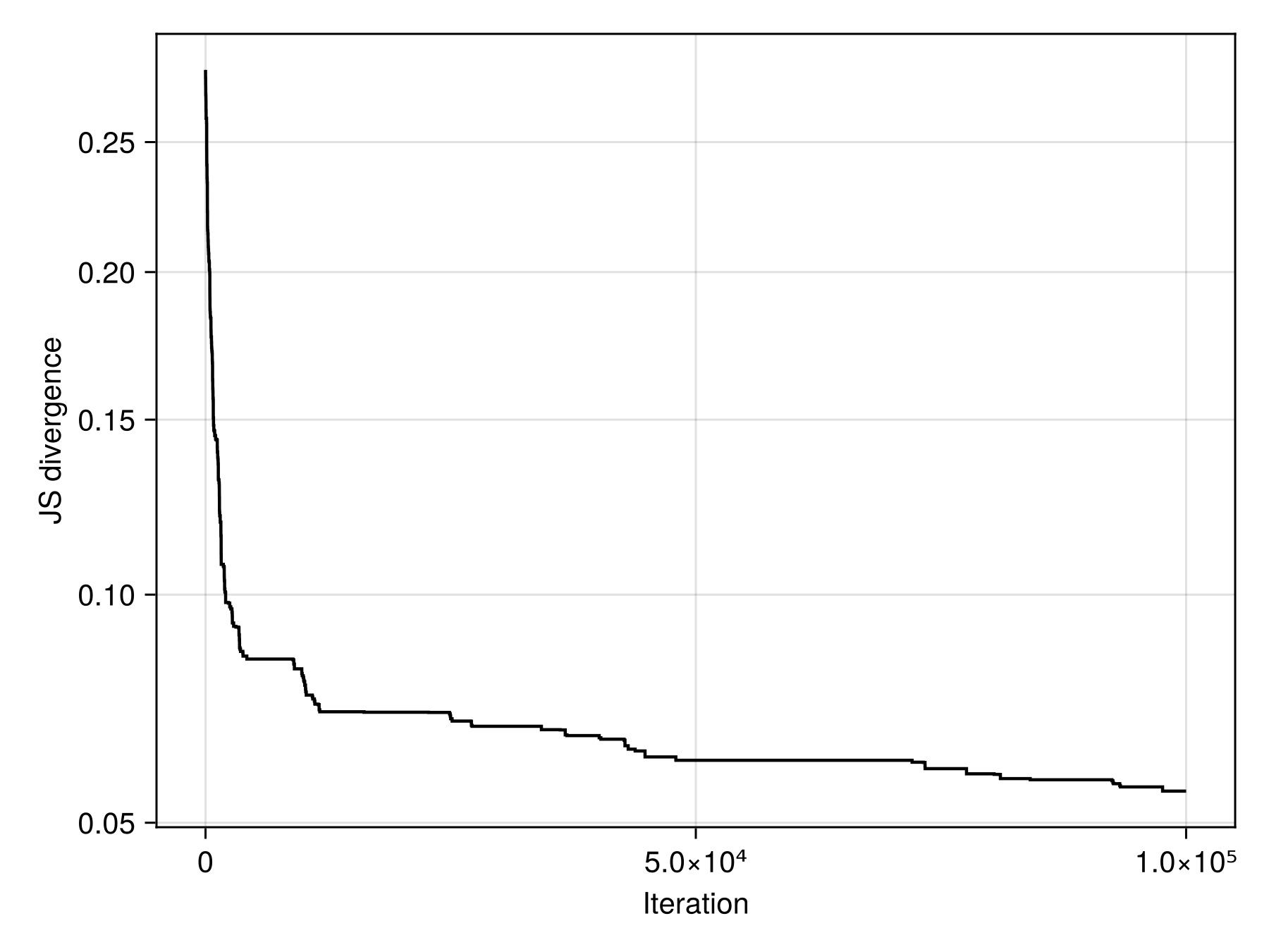 axis = (; yscale = sqrt, xlabel = "Iteration", ylabel = "JS divergence"),