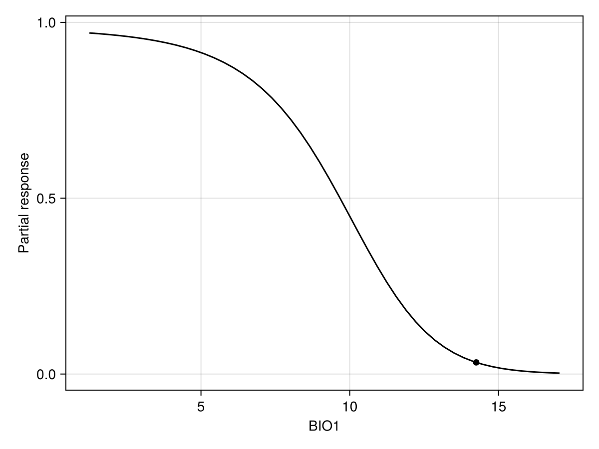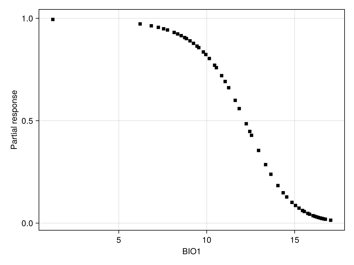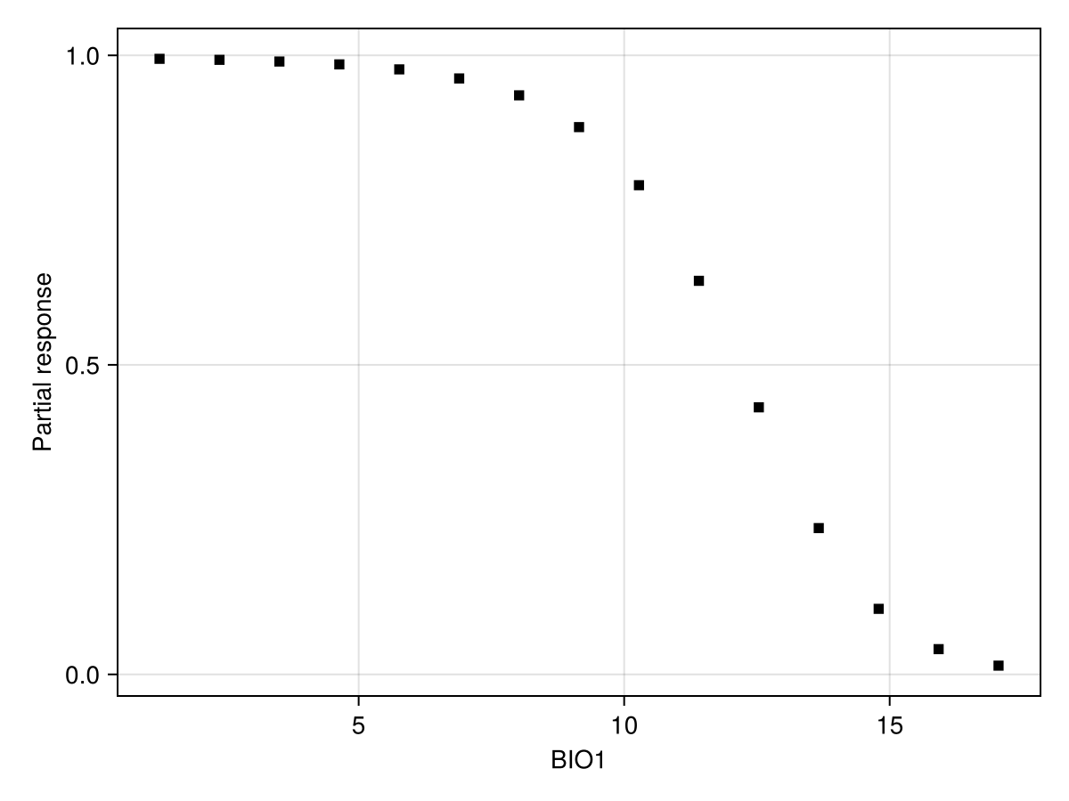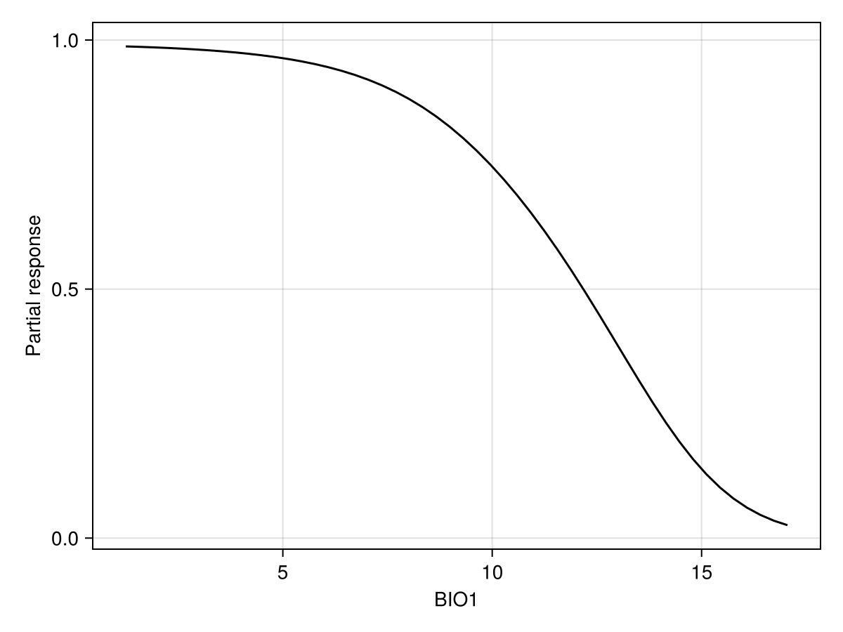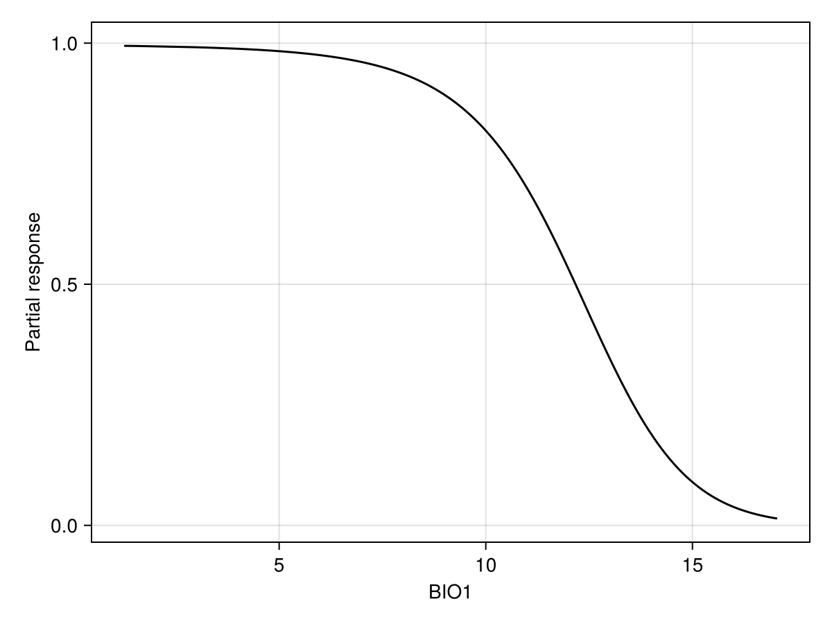 ax = Axis(f[1, 1]; xlabel = "BIO1", ylabel = "Partial response")