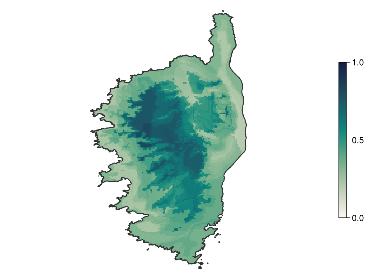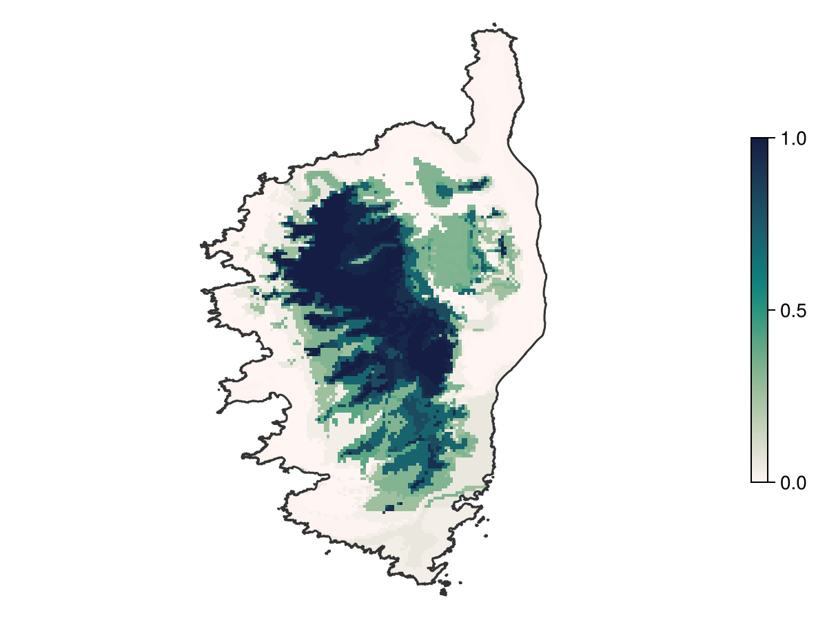 brd = predict(bst, L; threshold = false)🗺️ A 205 × 124 layer with 13685 Float64 cells
