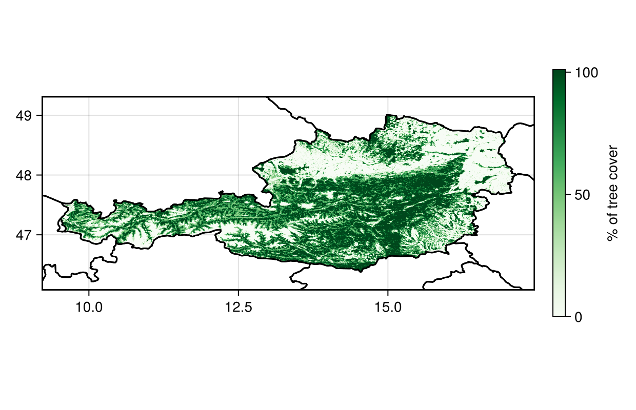 trees = reduce(+, landcover)🗺️ A 389 × 988 layer with 144630 UInt8 cells